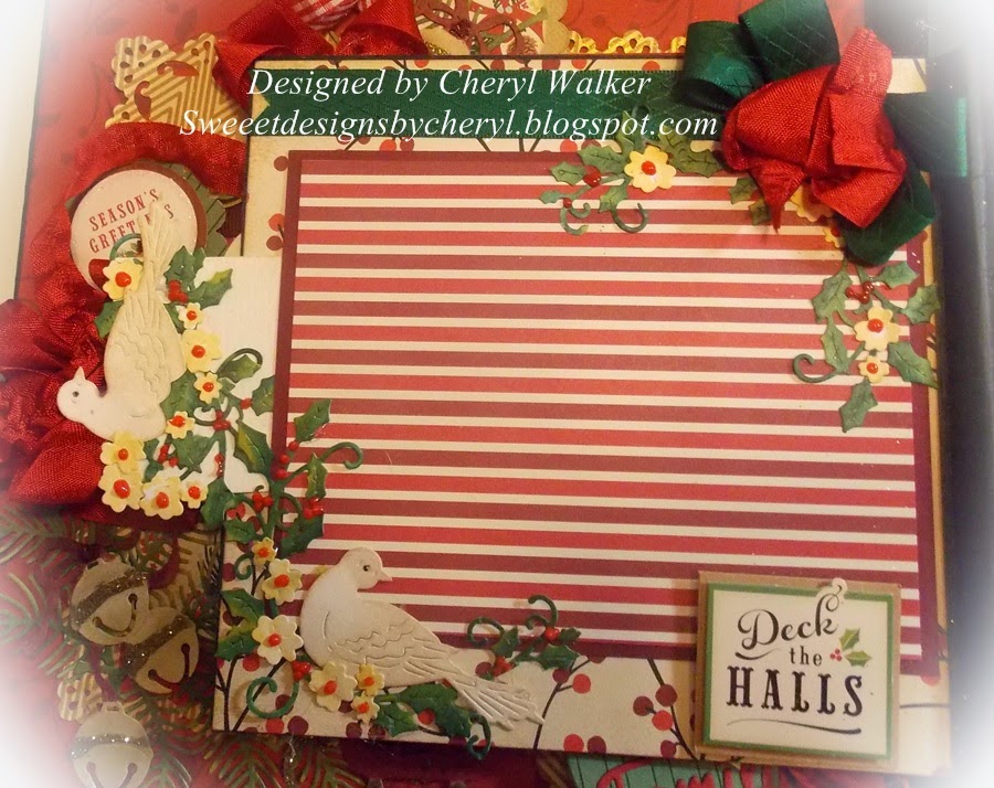 Another favorite page of mine, as this one has LOTS of room for tons of photo's. You will have to watch my video to see how many photo's you can fit on this one page. I used CottageCutz Doves on this page, and some of the branches from the CottageCutz Vintage Bells die. I used more of the Thickers, and they are pretty much being used on each page.